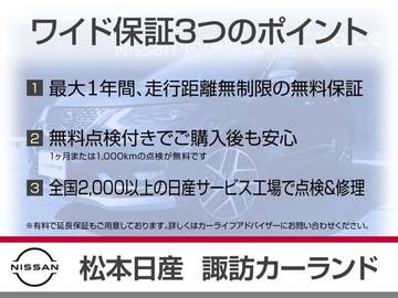 お車のことは、松本日産塩尻カーランドへぜひご用命ください!当店は日産の「ワイド保証」付きで販売しております。最長2年延長もご用意しております。