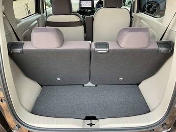 天井も高く広い室内とゆったりしたシート。リヤシートを格納すれば意外とたくさん荷物も載せられます。かわいいスタイルと低燃費で使える軽です。