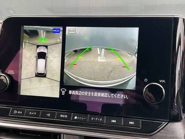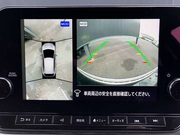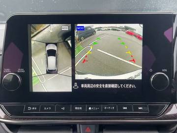 ニッサン ノートオーラ G レザーエディション 当社試乗車UPアラウンドビューモニター 駐車場での車庫入れや狭い道路での走行にカメラで確認が出来るので安心です。