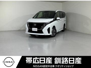 日産プレミアム認定中古車│試乗車UPのe-4ORCEの白いセレナが入庫しました!障害物センサー衝突被害軽減ブレーキ横滑り防止装置アクセル踏み間違い防止装置レーンキープ...
