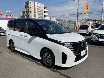 令和6年式のセレナ・e-4ORCEハイウェイスターV。e-4ORCEは前後に2つのモーターを搭載し総合的に制御。雪道だけでなく舗装路でも快適で安定感ある走り...