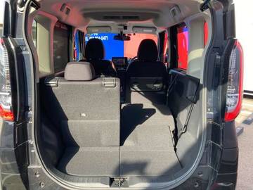 後席をフラットに格納することで、高さと奥行のある大容量ラゲッジスペースが出現!ヘッドレストを外さずに格納できるので、素早く格納でき、操作も簡単なルークスです。