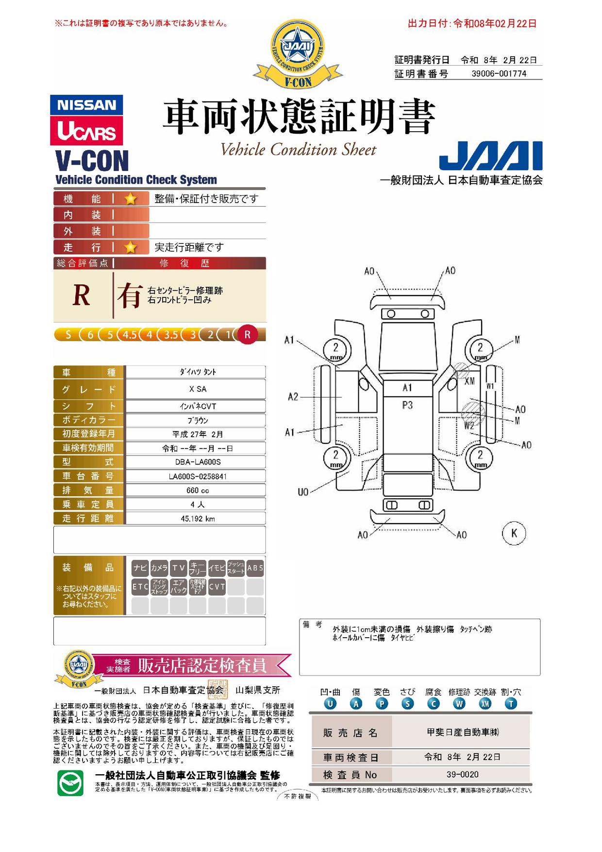 現状括弧書き内の年月まで車検有効期限が残っていますが、ご成約時に新しく車検を取り直します。なお取り直しの費用は車両価格に含まれています。