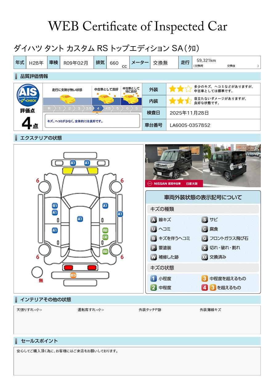 現状括弧書き内の年月まで車検有効期限が残っていますが、ご成約時に新しく車検を取り直します。なお取り直しの費用は車両価格に含まれています。