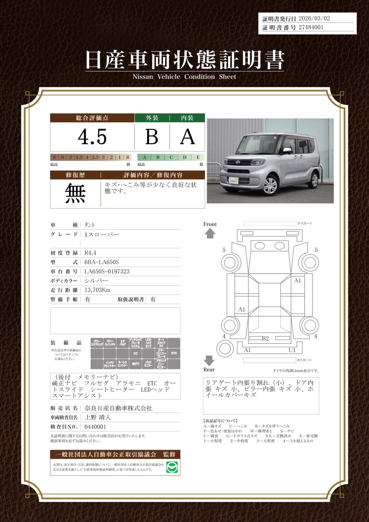 現状括弧書き内の年月まで車検有効期限が残っていますが、ご成約時に新しく車検を取り直します。なお取り直しの費用は車両価格に含まれています。