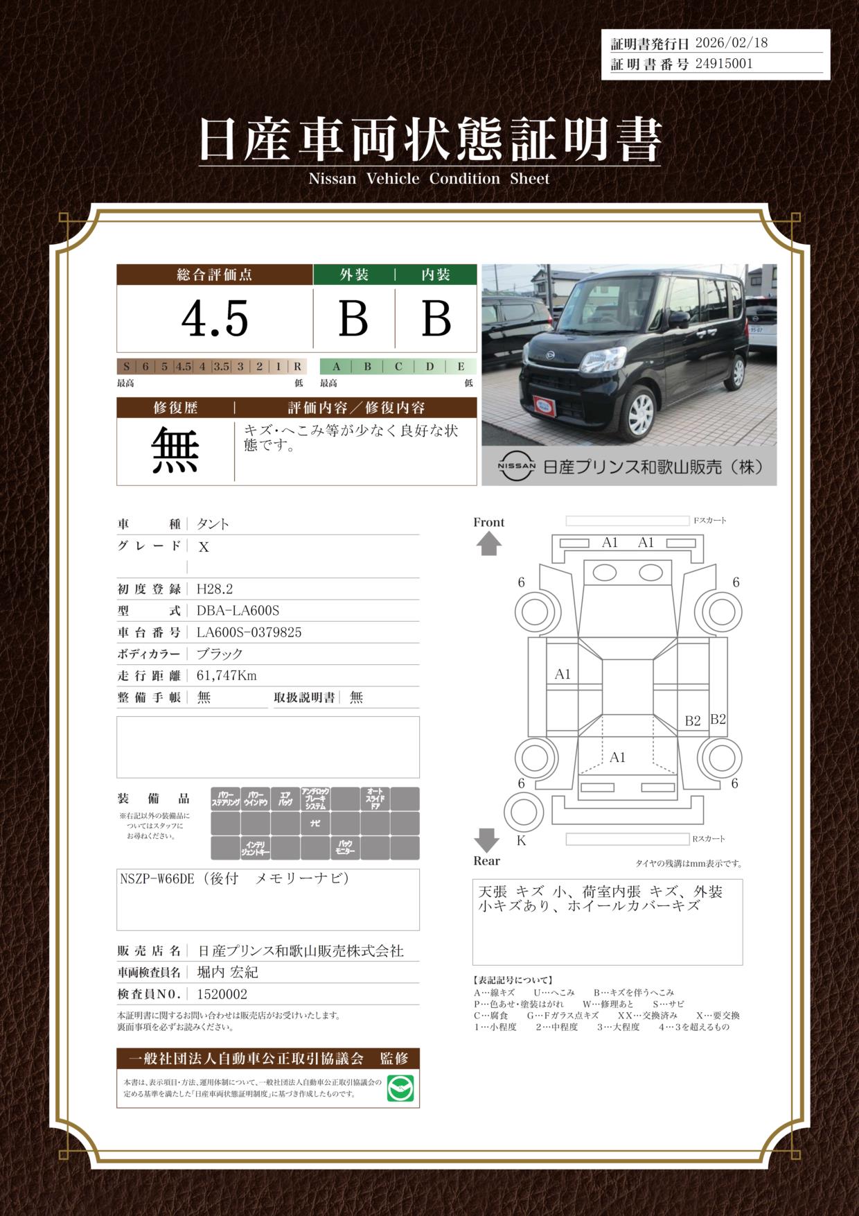 現状括弧書き内の年月まで車検有効期限が残っていますが、ご成約時に新しく車検を取り直します。なお取り直しの費用は車両価格に含まれています。
