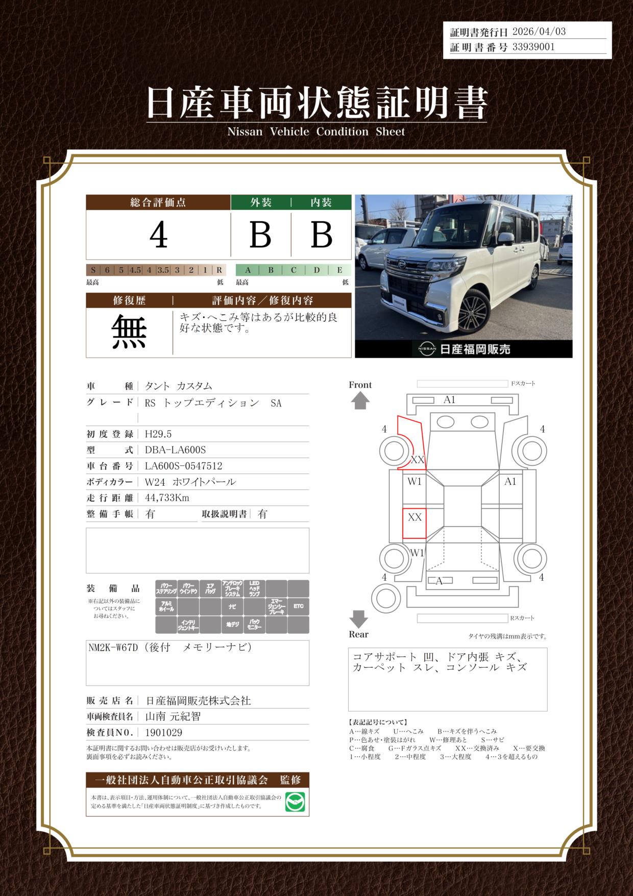 日産車両状態証明