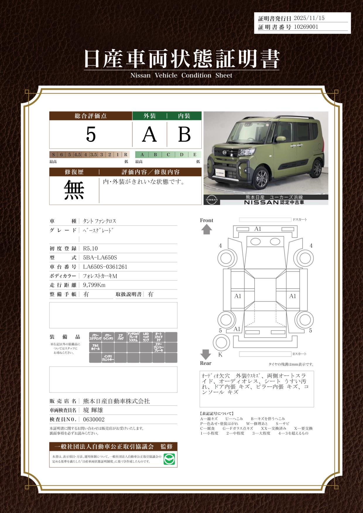 評価機関 : 日産車両状態証明