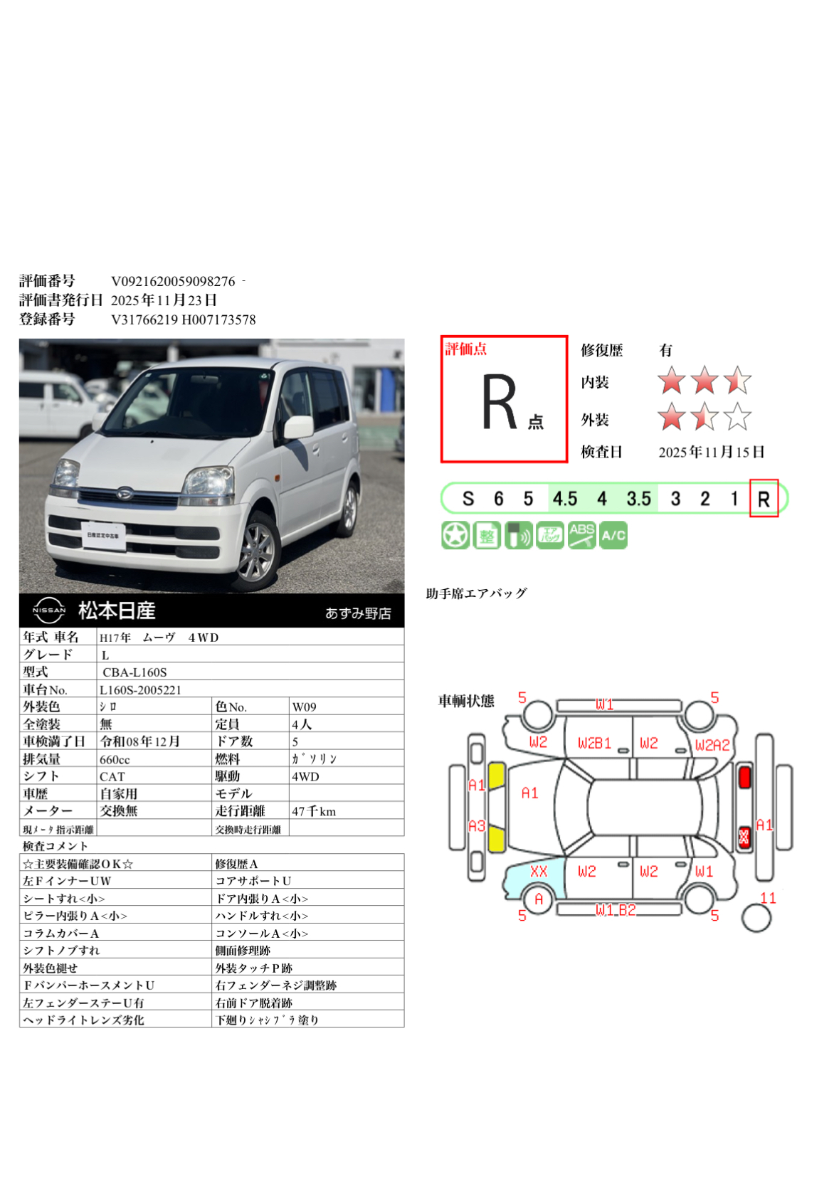 現状括弧書き内の年月まで車検有効期限が残っていますが、ご成約時に新しく車検を取り直します。なお取り直しの費用は車両価格に含まれています。