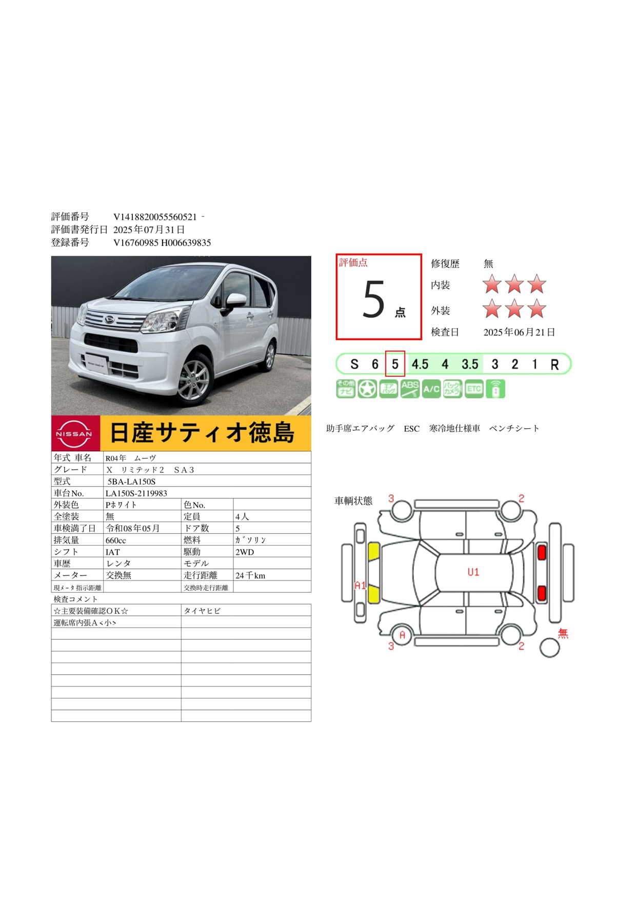 評価点イメージ : 走行距離5万kmまで内外装がとてもきれいな状態です。