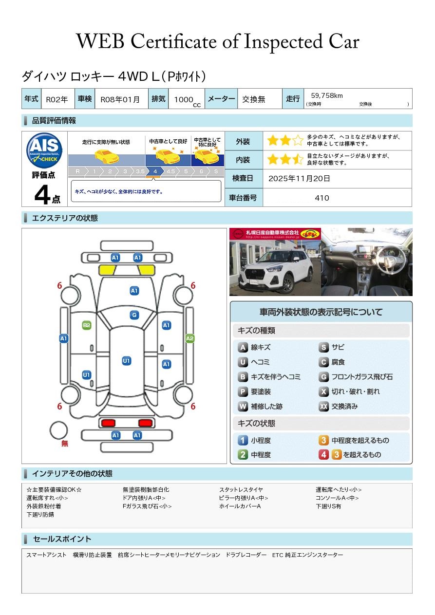 現状括弧書き内の年月まで車検有効期限が残っていますが、ご成約時に新しく車検を取り直します。なお取り直しの費用は車両価格に含まれています。