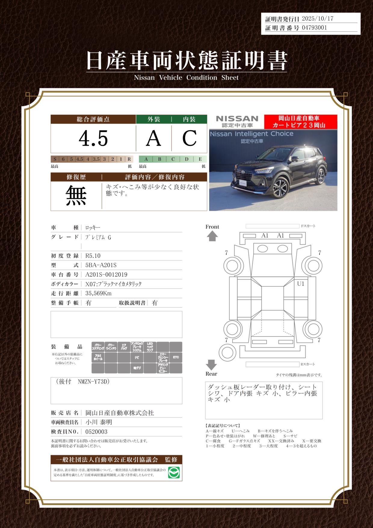 現状括弧書き内の年月まで車検有効期限が残っていますが、ご成約時に新しく車検を取り直します。なお取り直しの費用は車両価格に含まれています。