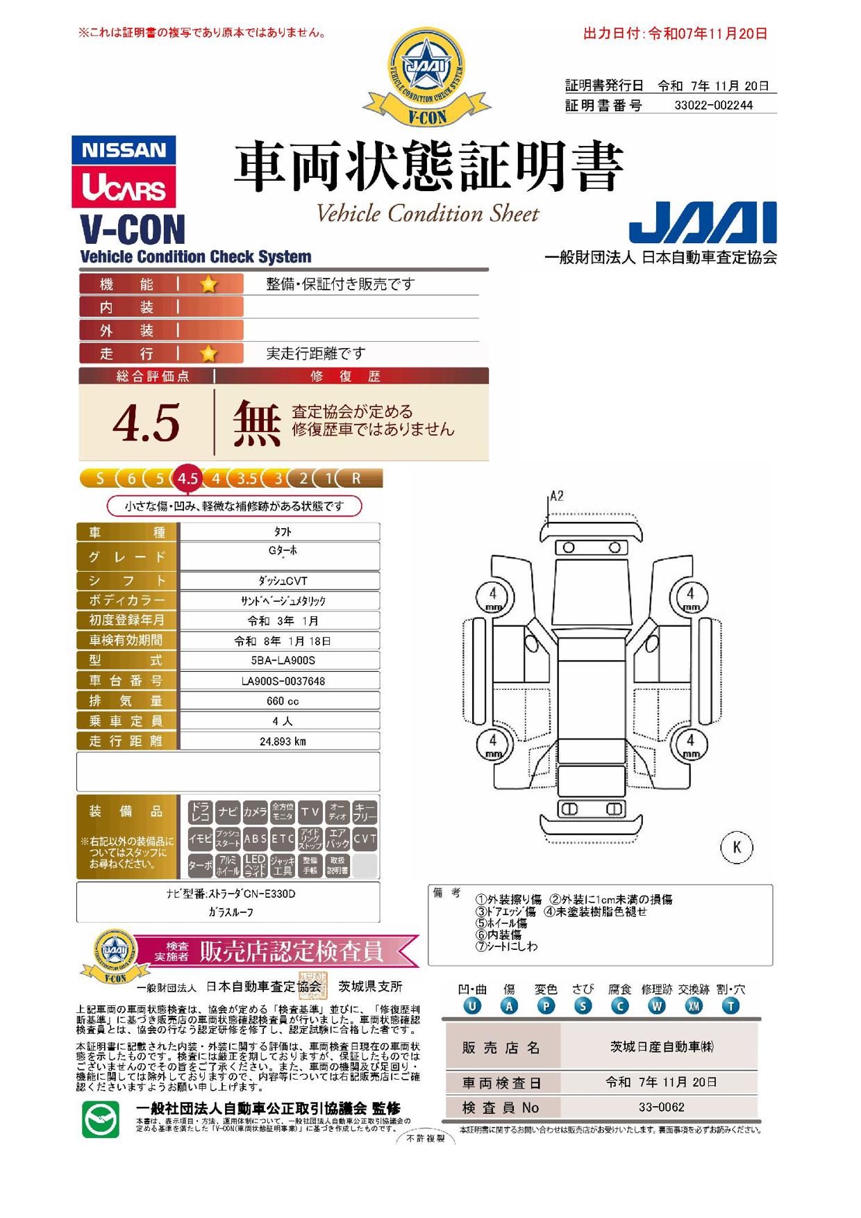 現状括弧書き内の年月まで車検有効期限が残っていますが、ご成約時に新しく車検を取り直します。なお取り直しの費用は車両価格に含まれています。
