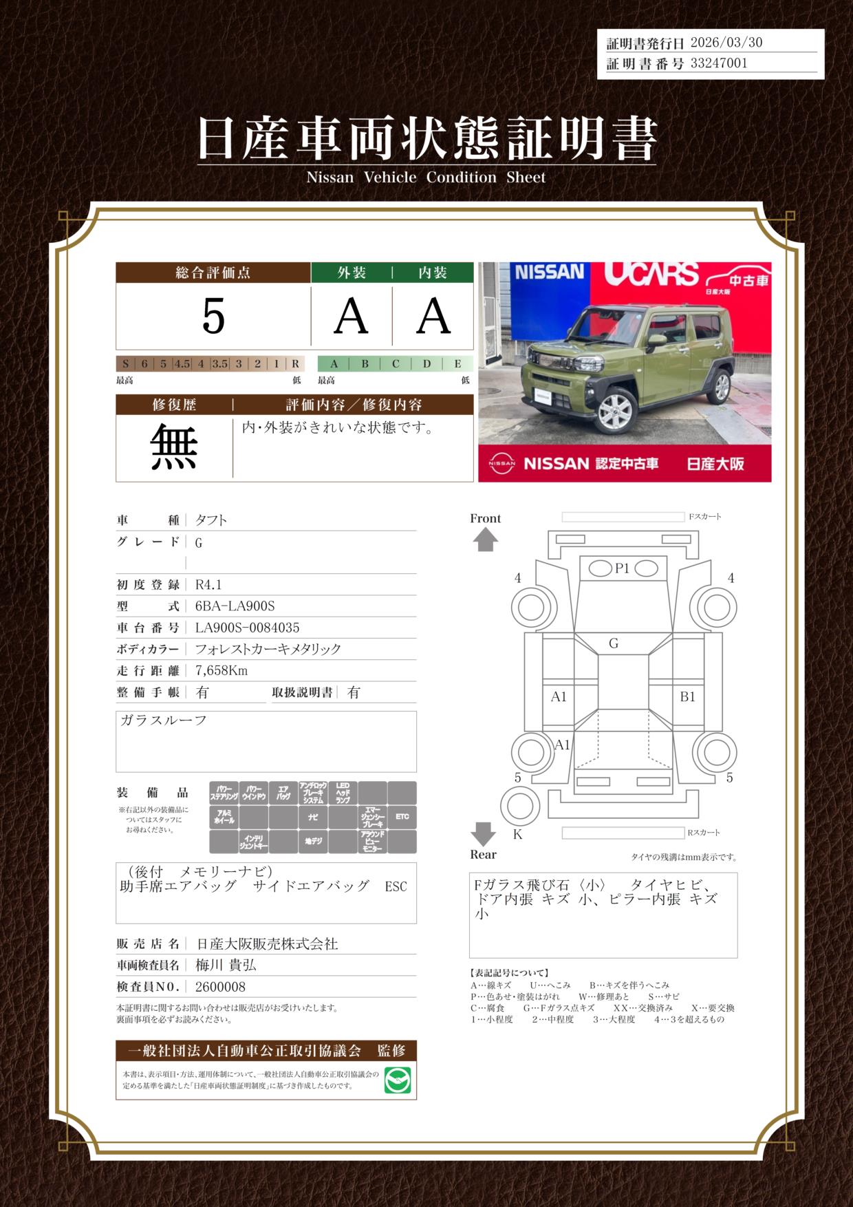 日産大阪UCARS枚方『日産中古車ワイド保証12ケ月』:延長保証もございます。スカイフィールトップ・パノラマモニタ&ナビTV・ETC・LED・前後踏間違防止・純正15AW・社外前後ドラレコ