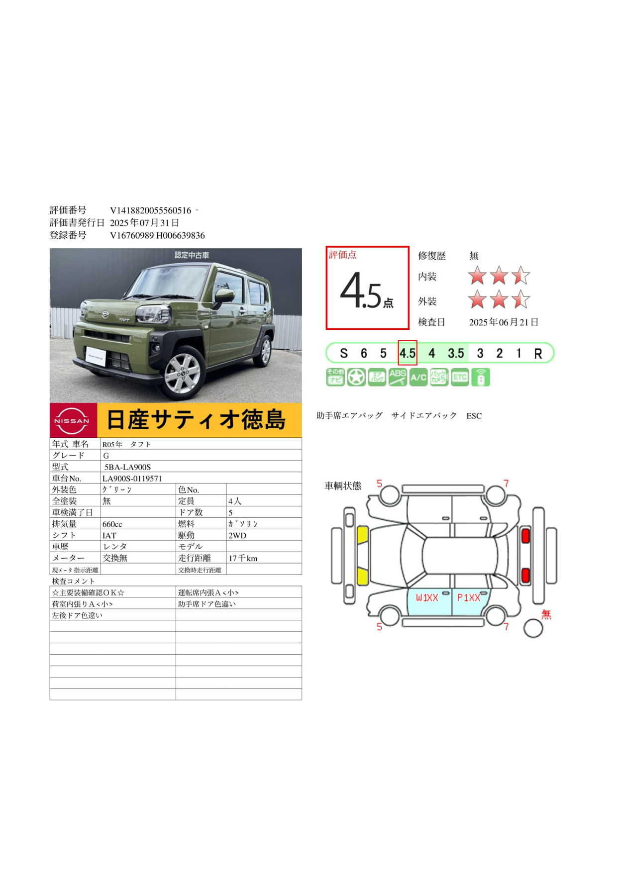 評価点イメージ : 中古車としては、内外装ともきれいな状態です。