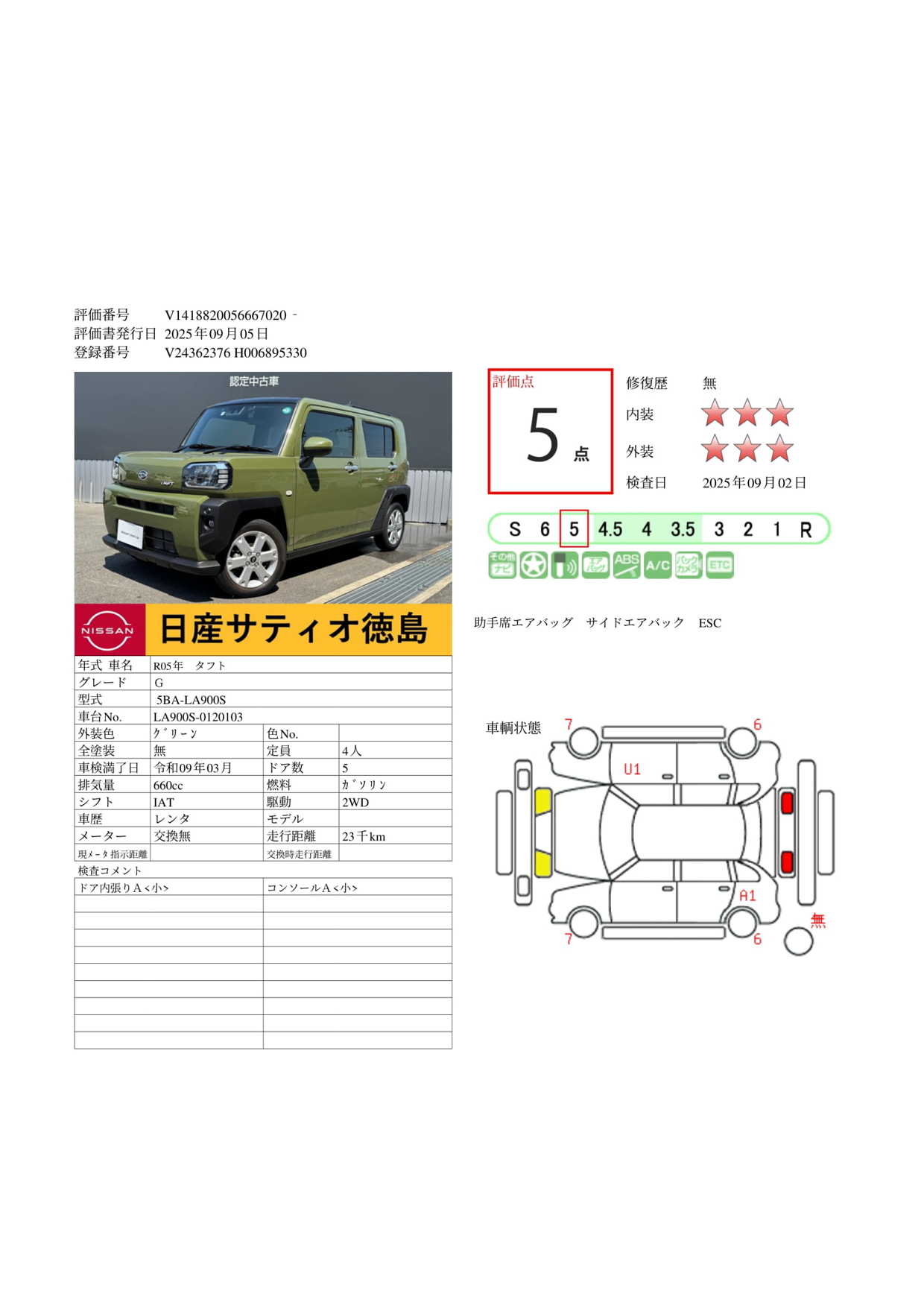 現状括弧書き内の年月まで車検有効期限が残っていますが、ご成約時に新しく車検を取り直します。なお取り直しの費用は車両価格に含まれています。