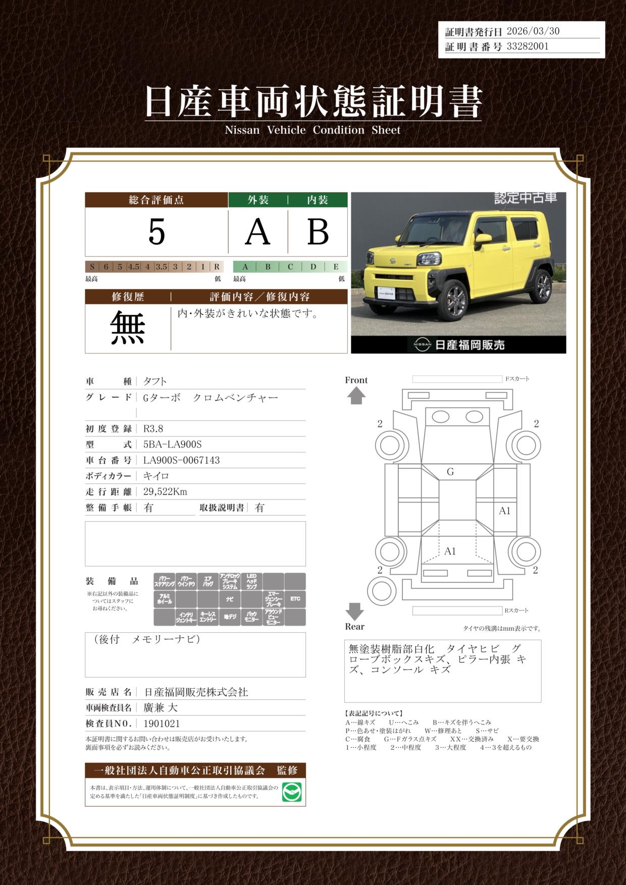 日産車両状態証明