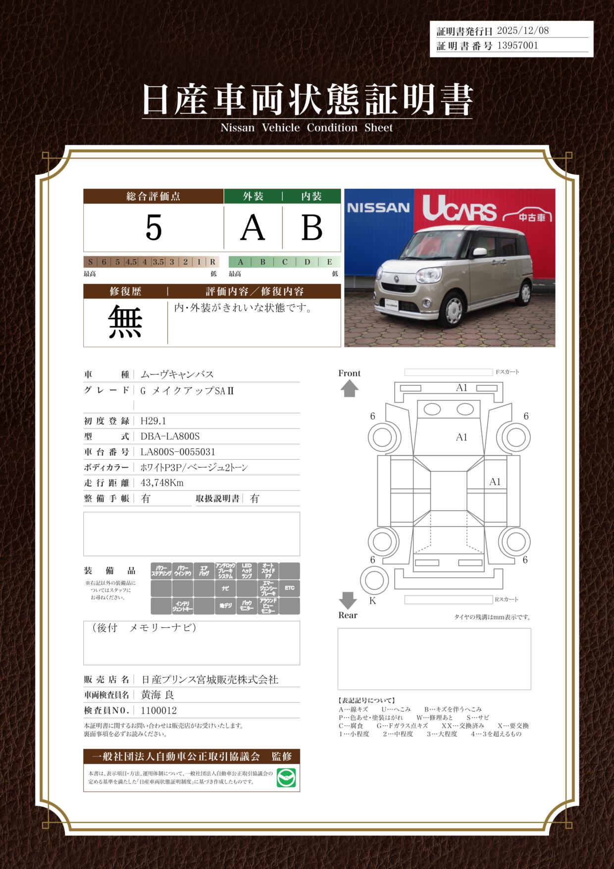 現状車検切れの状態ですが、ご成約時に新しく車検を実施します。車検費用は車両価格に含まれています。