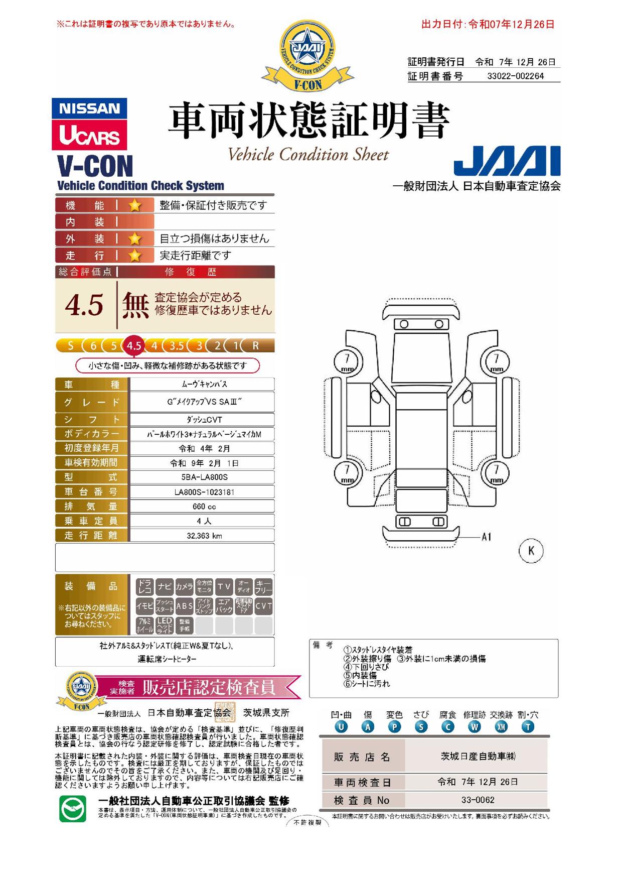 現状括弧書き内の年月まで車検有効期限が残っていますが、ご成約時に新しく車検を取り直します。なお取り直しの費用は車両価格に含まれています。
