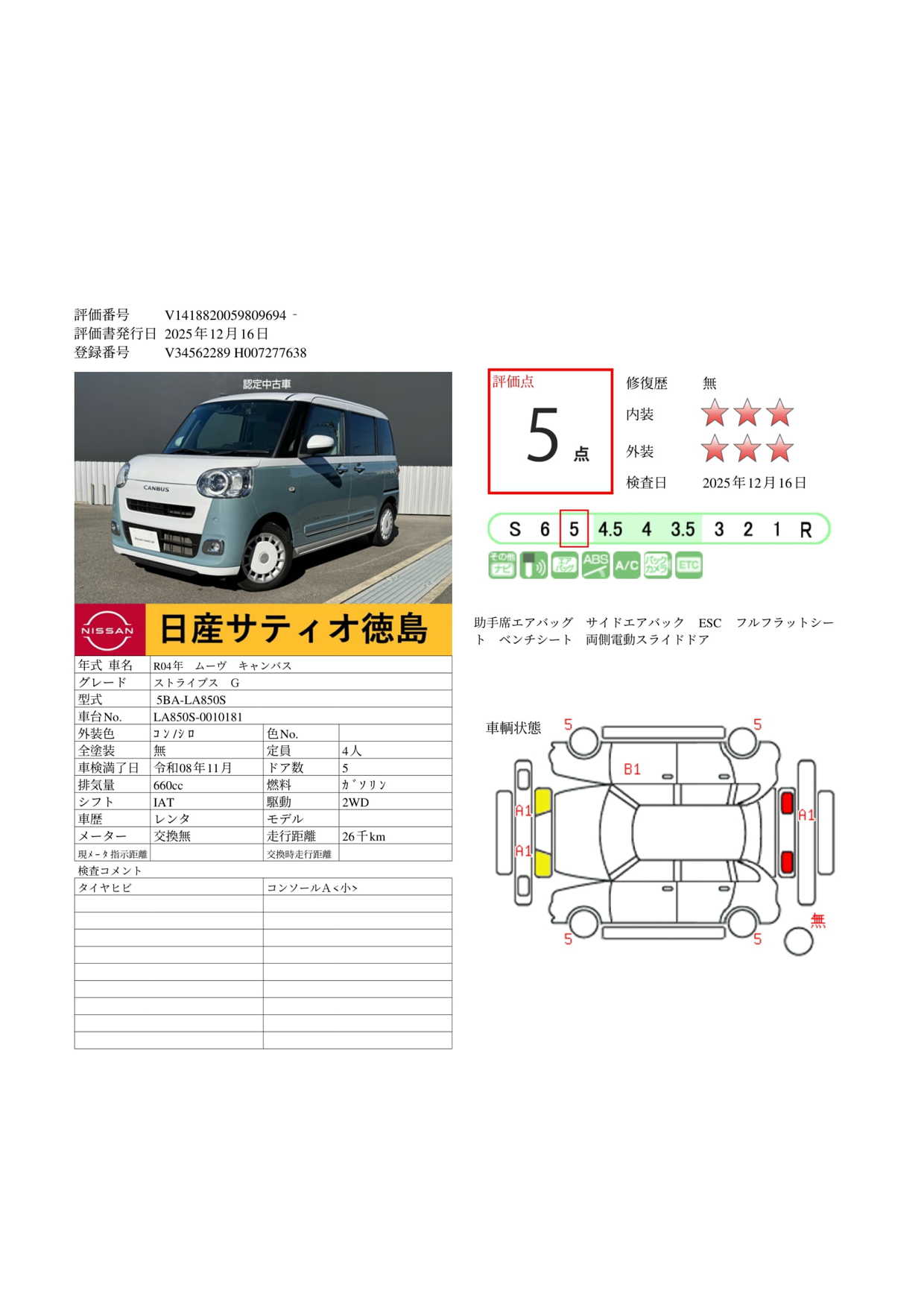 評価点イメージ : 走行距離5万kmまで内外装がとてもきれいな状態です。