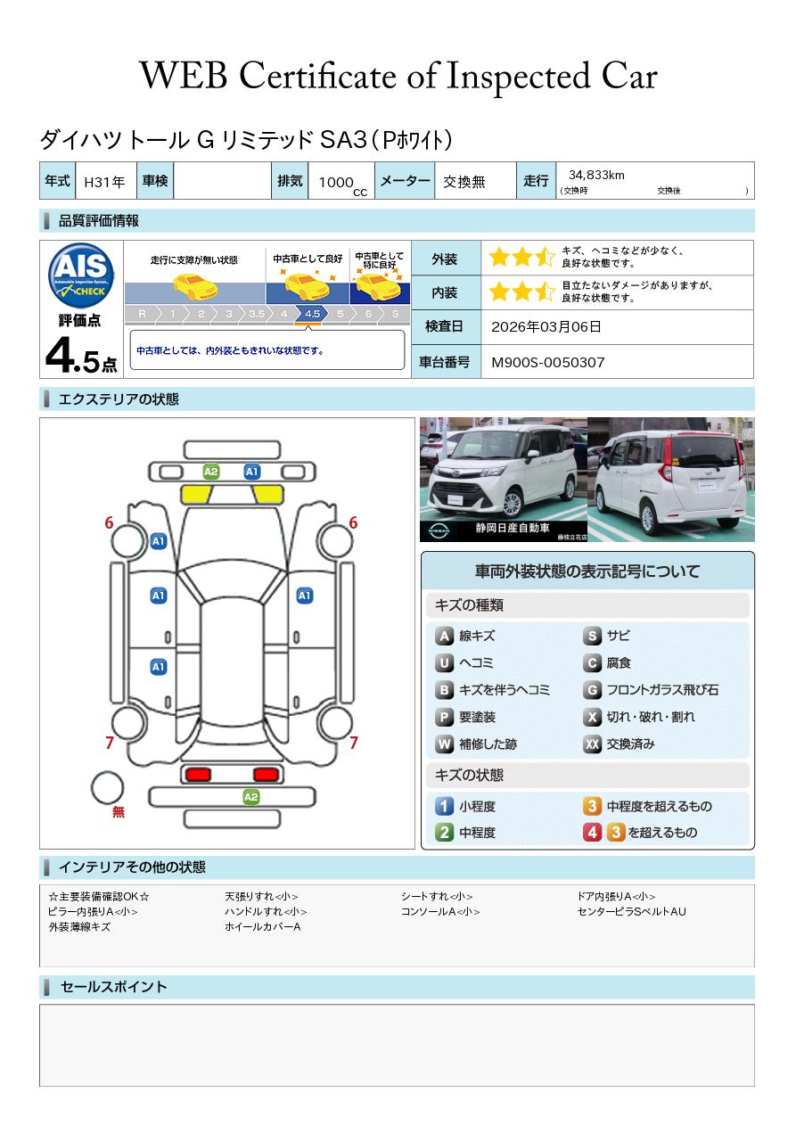 現状括弧書き内の年月まで車検有効期限が残っていますが、ご成約時に新しく車検を取り直します。なお取り直しの費用は車両価格に含まれています。