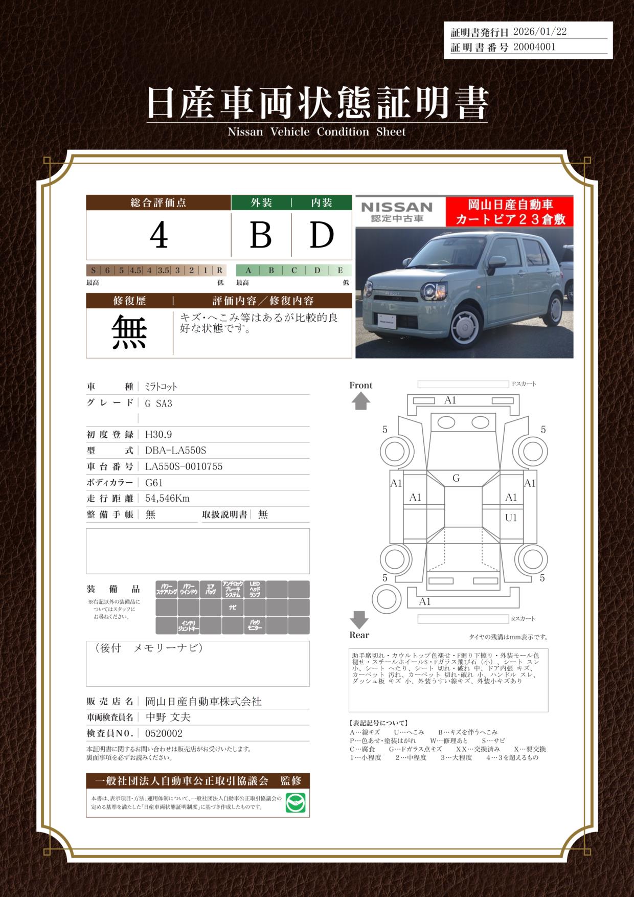 評価点イメージ : キズ・へこみ等はあるが比較的良好な状態です。