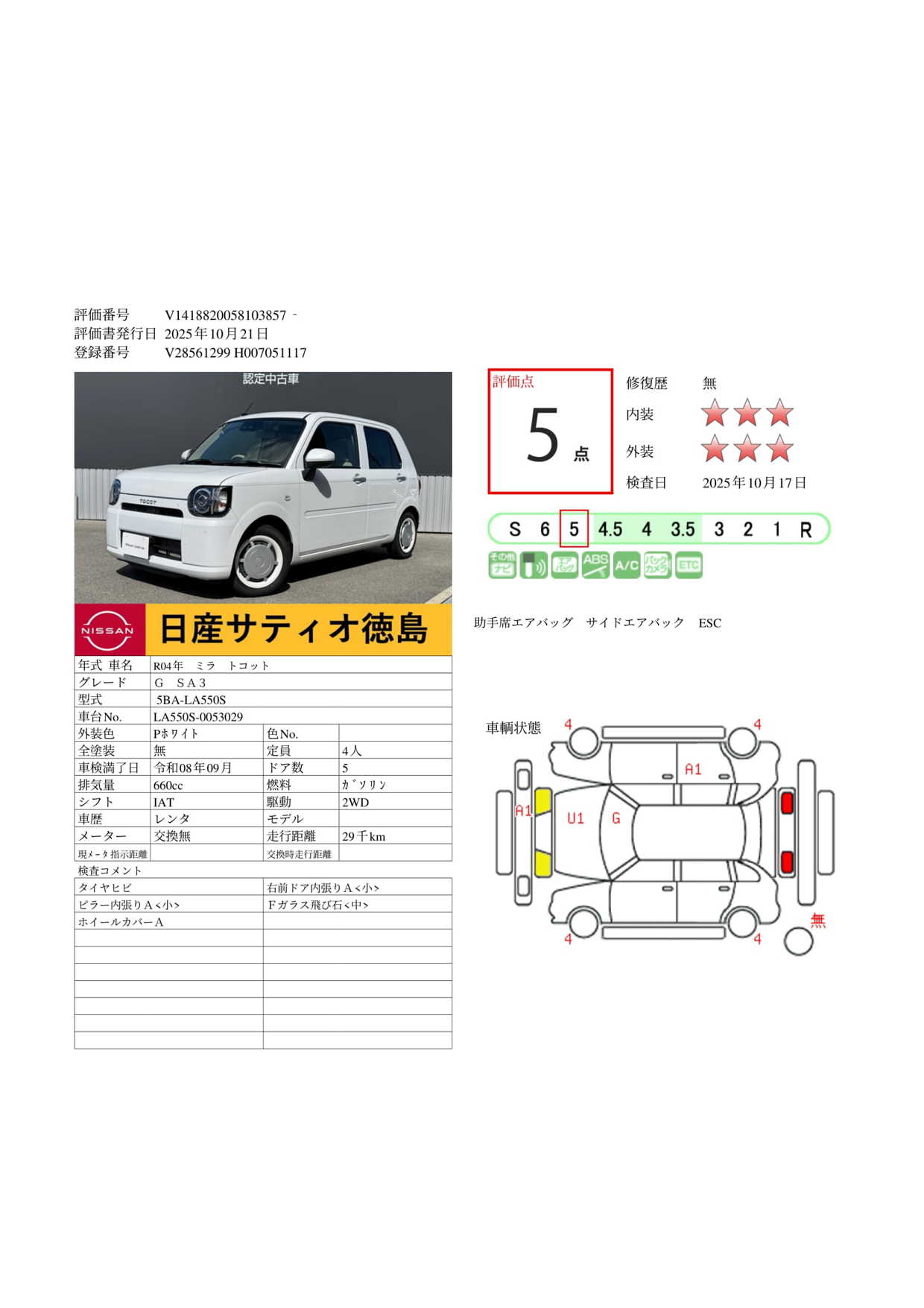 評価点イメージ : 走行距離5万kmまで内外装がとてもきれいな状態です。