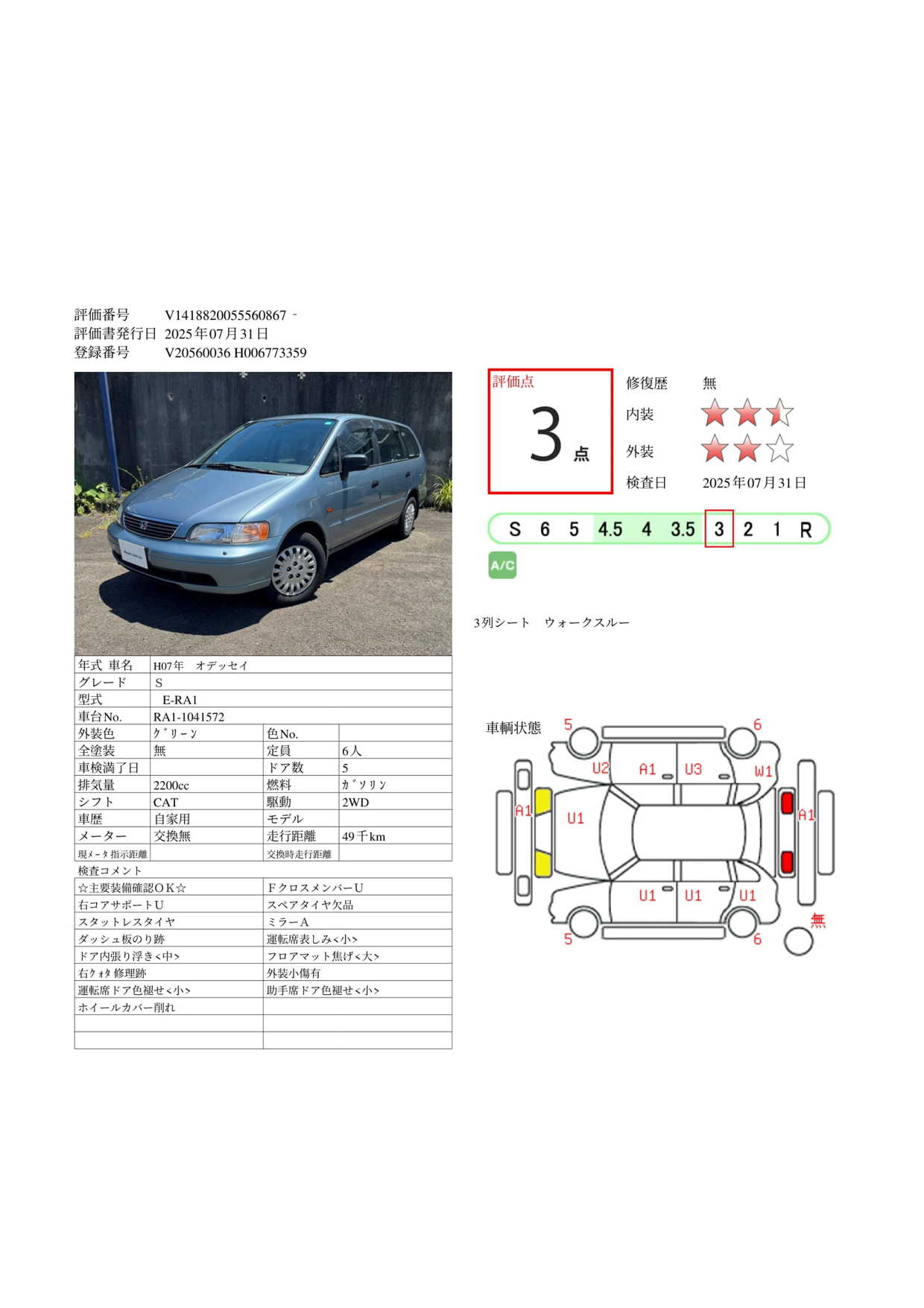 現状車検切れの状態ですが、ご成約時に新しく車検を実施します。車検費用は車両価格に含まれています。