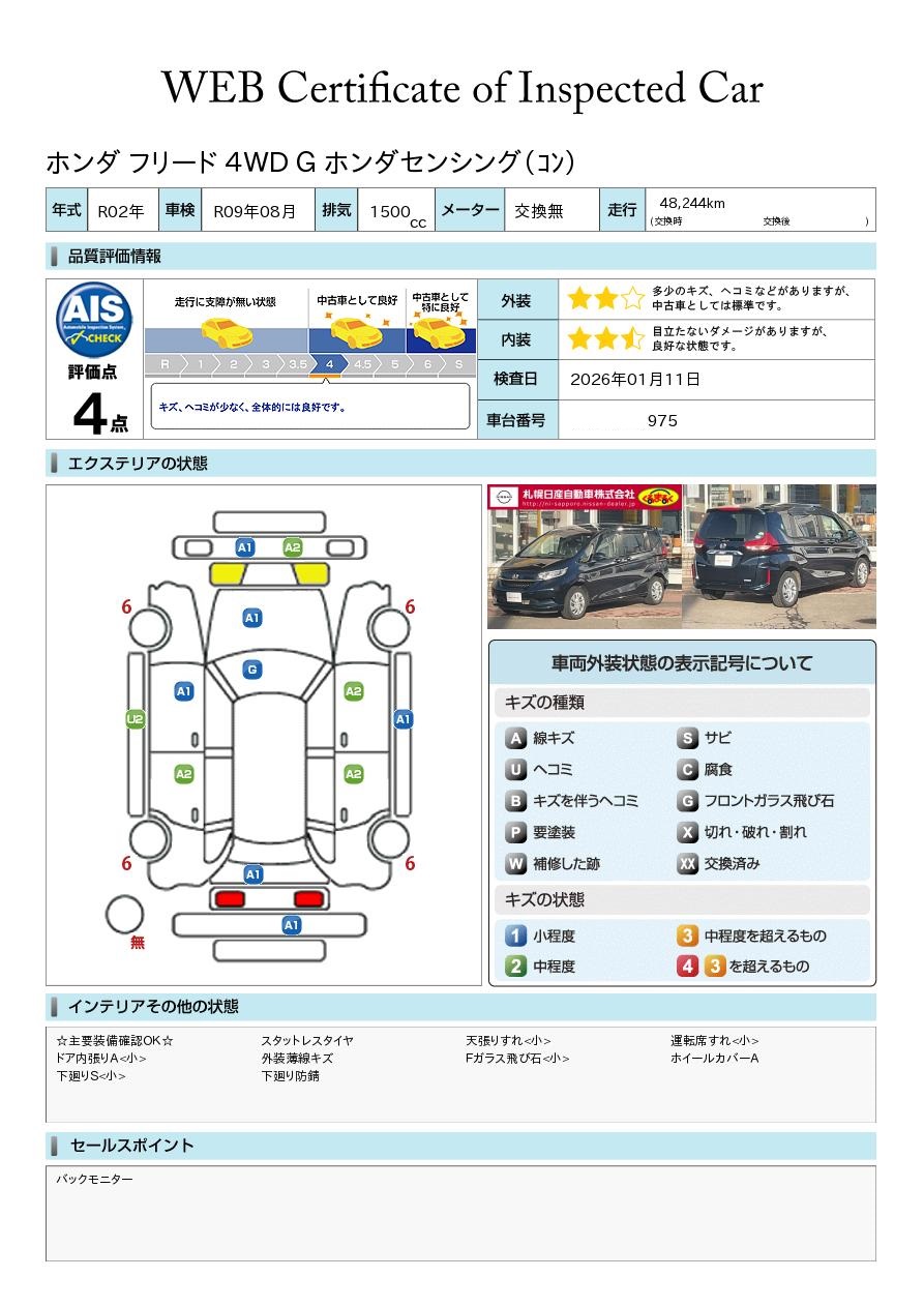 フリード 1500cc 1.5 G ホンダセンシング 4WD 純正ナビゲーション