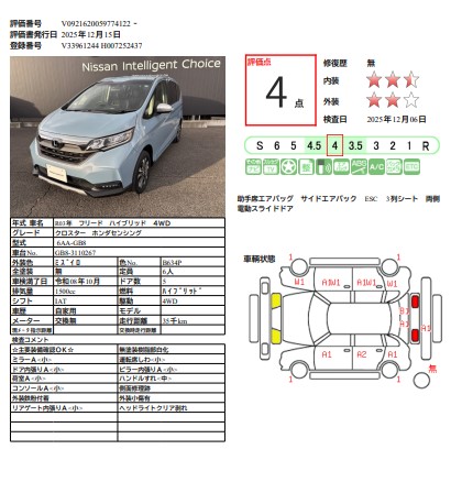 フリード 1500cc 1.5 ハイブリッド クロスター ホンダセンシング 4WD 衝突軽減ブレーキ バックカメラ LED