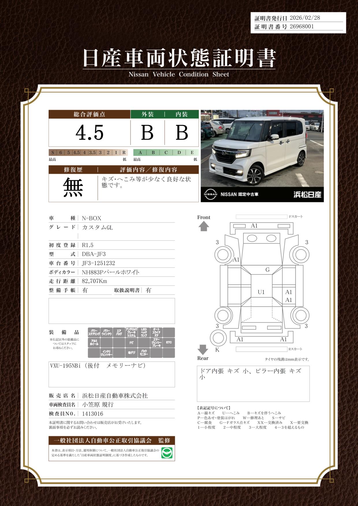 評価機関 : 日産車両状態証明