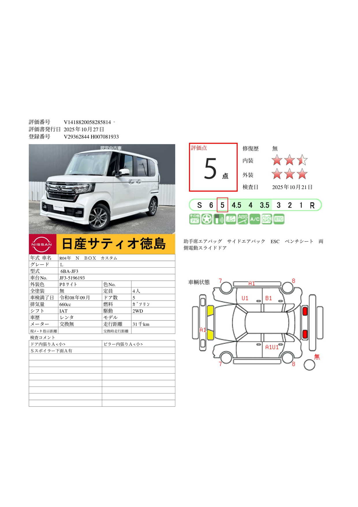 N-BOX 660cc 660 L 両側パワスラ・サイド・カーテンエアバック