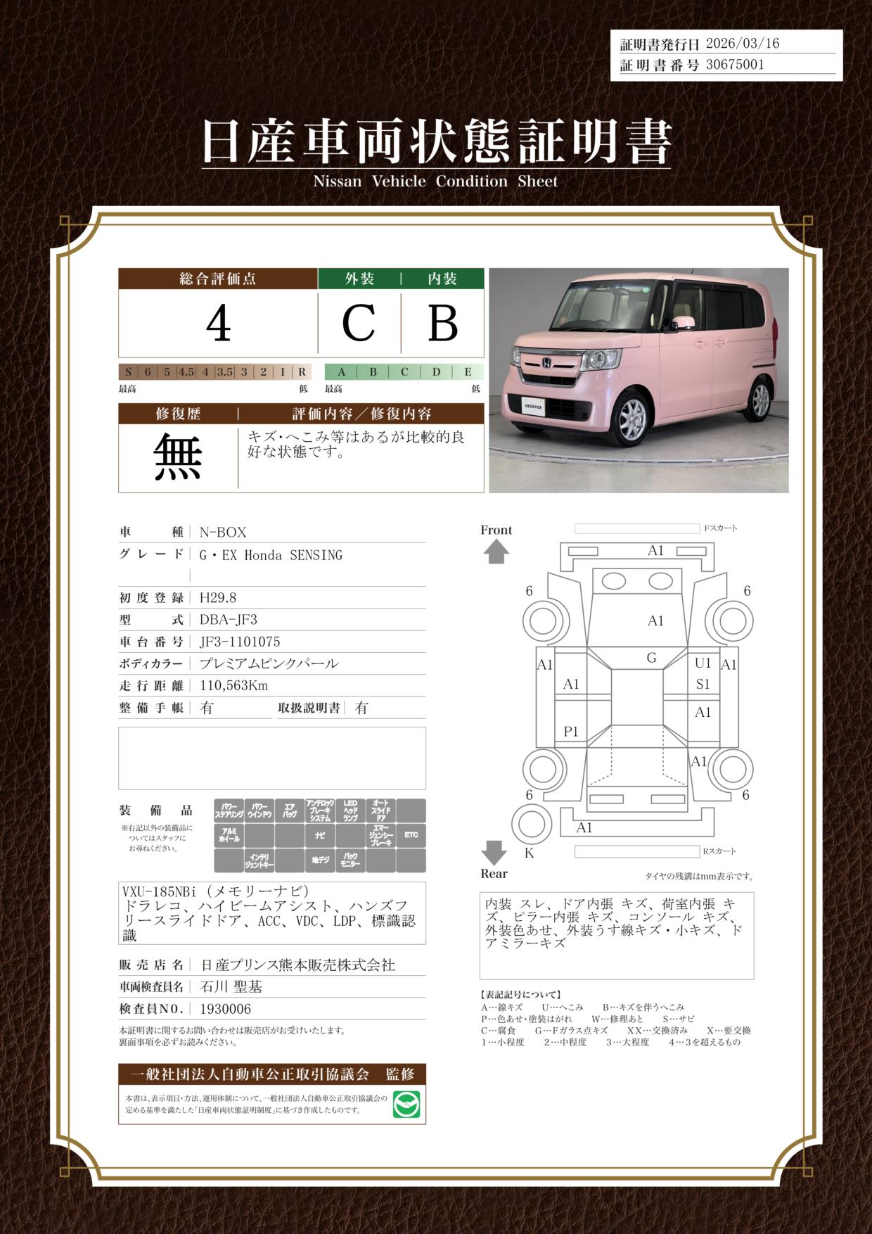 日産車両状態証明