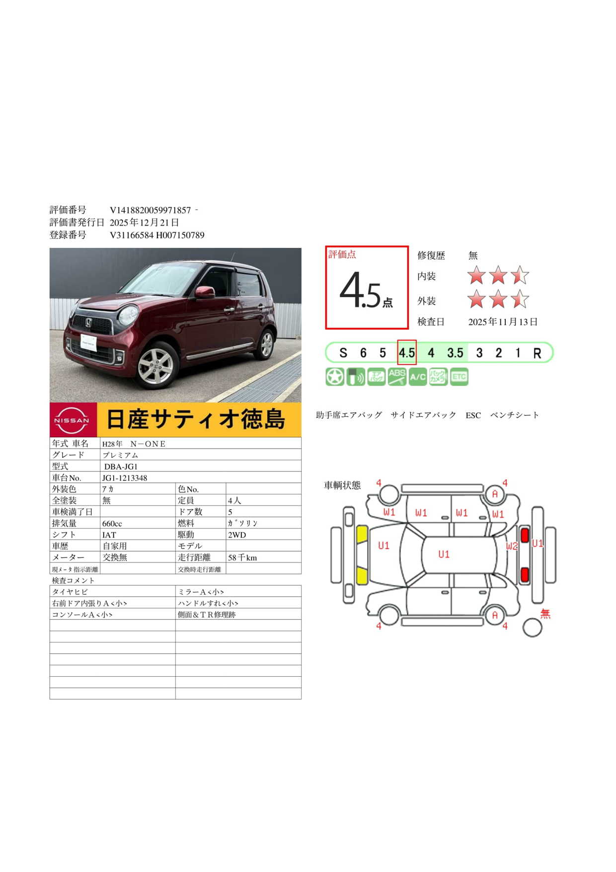 N-ONE 660cc 660 プレミアム バックカメラ・あんしんパッケージ・ETC