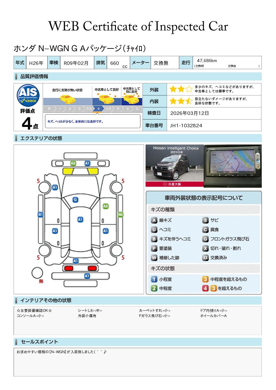 お求めやすい価格の【N-WGN】が入荷致しました(^^♪お支払い総額は大阪府内での基本お見積もりです。他府県登録も可能ですのでお気軽にお問い合わせください。