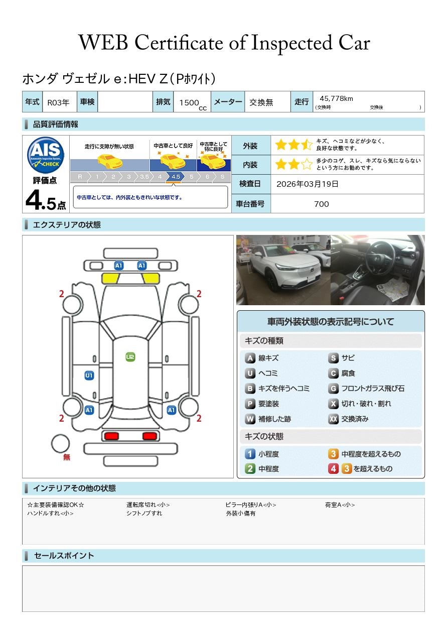 現状括弧書き内の年月まで車検有効期限が残っていますが、ご成約時に新しく車検を取り直します。なお取り直しの費用は車両価格に含まれています。