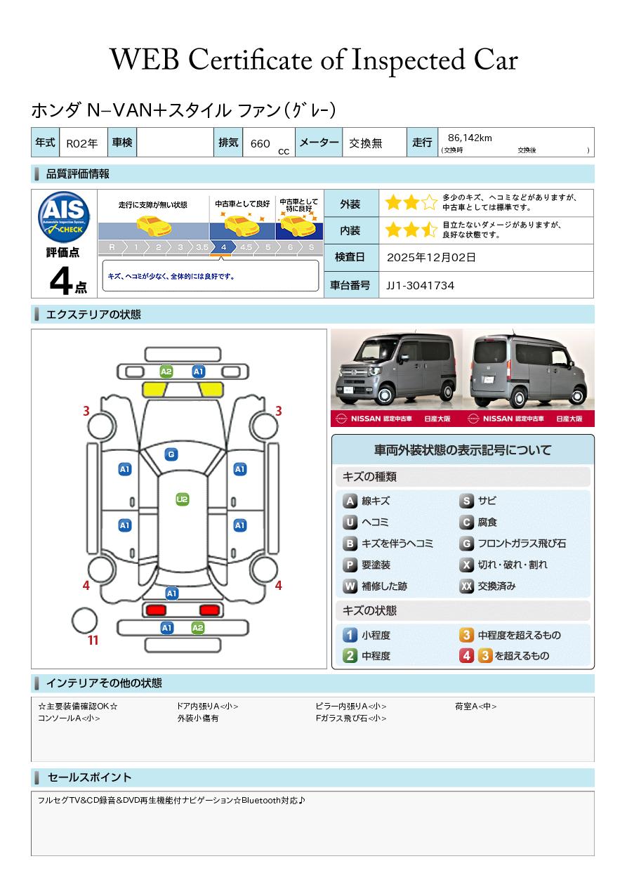 N-VAN 660cc 660 +スタイル ファン メモリーナビ&フルセグ
