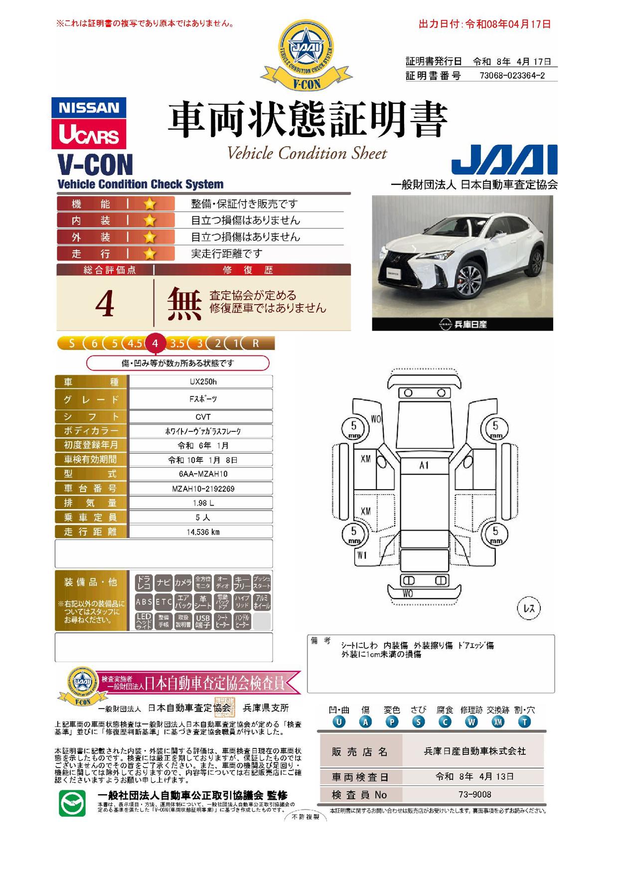 現状括弧書き内の年月まで車検有効期限が残っていますが、ご成約時に新しく車検を取り直します。なお取り直しの費用は車両価格に含まれています。