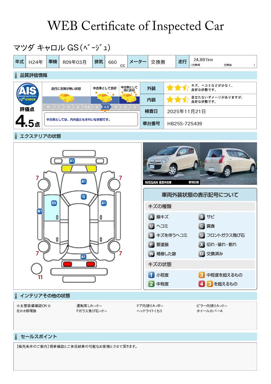 評価点イメージ : 中古車としては、内外装ともきれいな状態です。