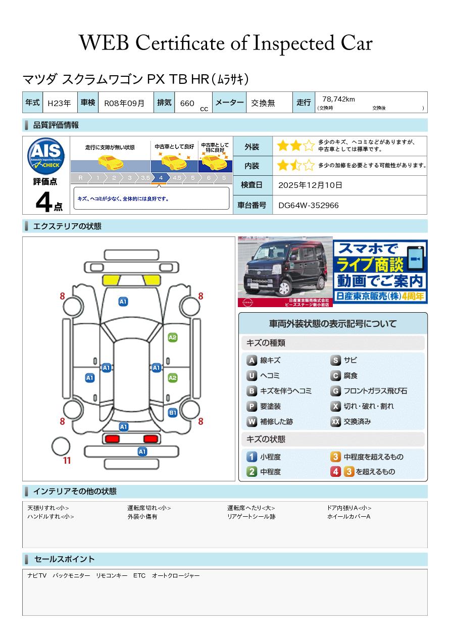 現状括弧書き内の年月まで車検有効期限が残っていますが、ご成約時に新しく車検を取り直します。なお取り直しの費用は車両価格に含まれています。