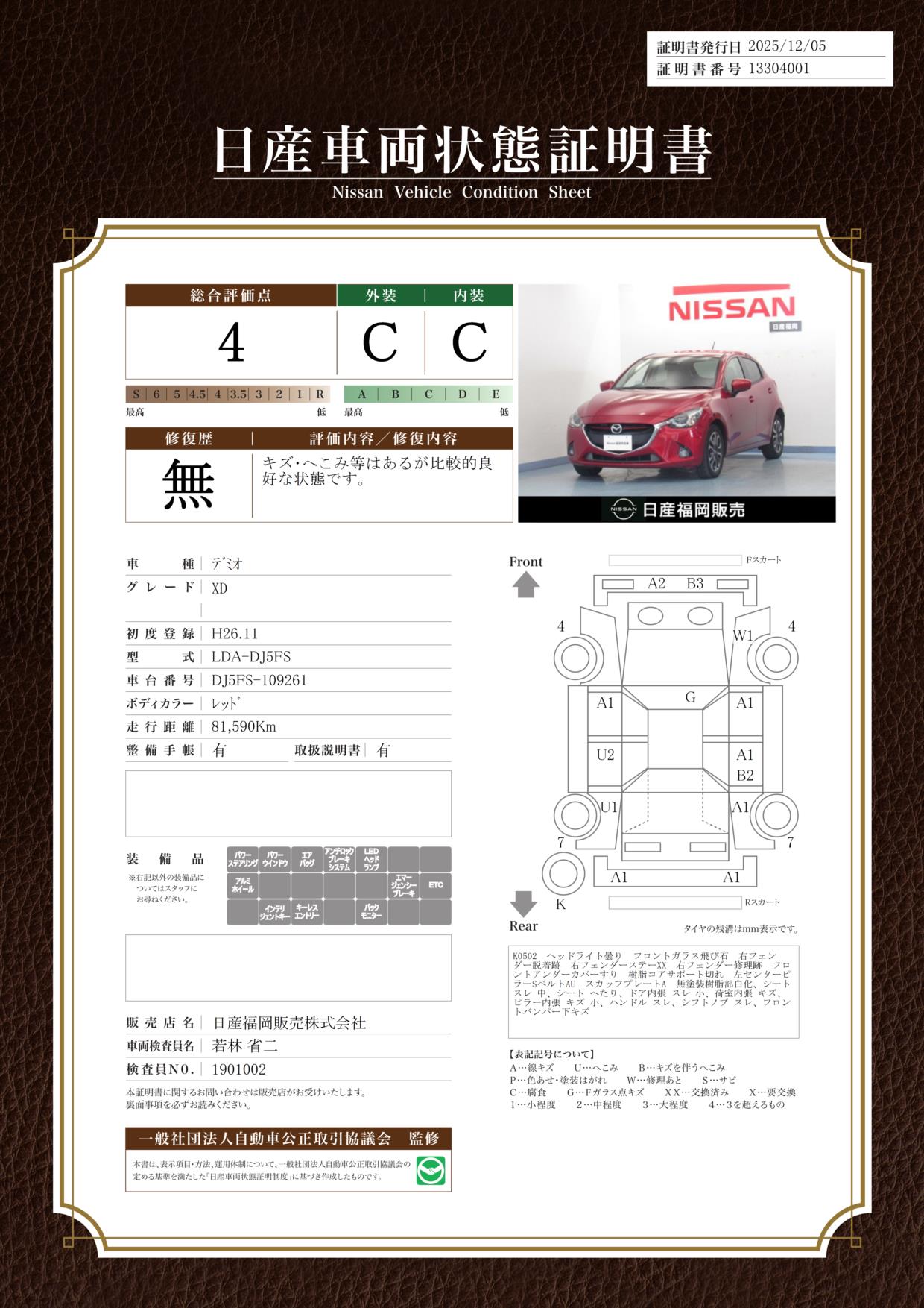 納車時に定期点検整備(費用は車両価格に含まれます。)