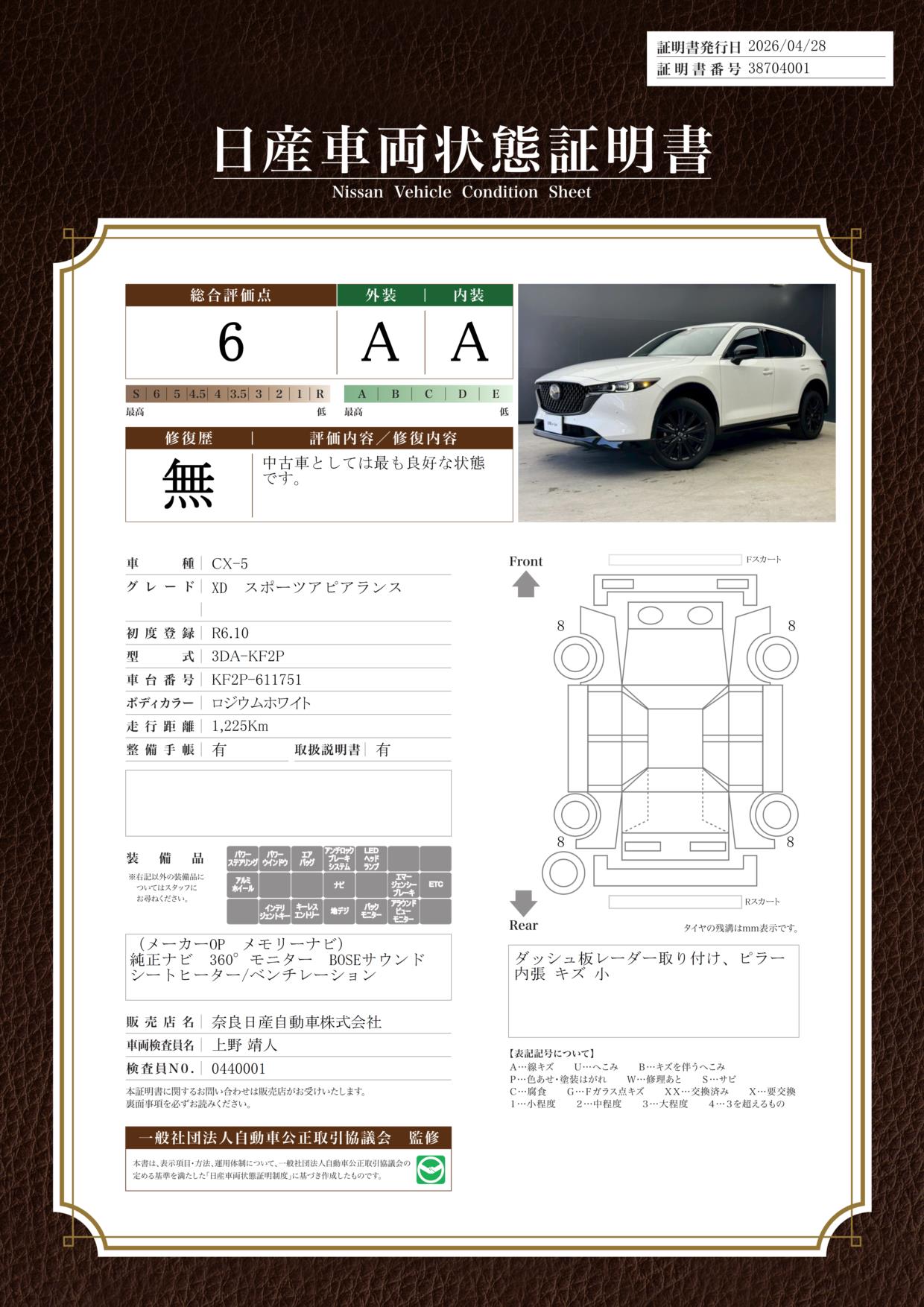 現状括弧書き内の年月まで車検有効期限が残っていますが、ご成約時に新しく車検を取り直します。なお取り直しの費用は車両価格に含まれています。