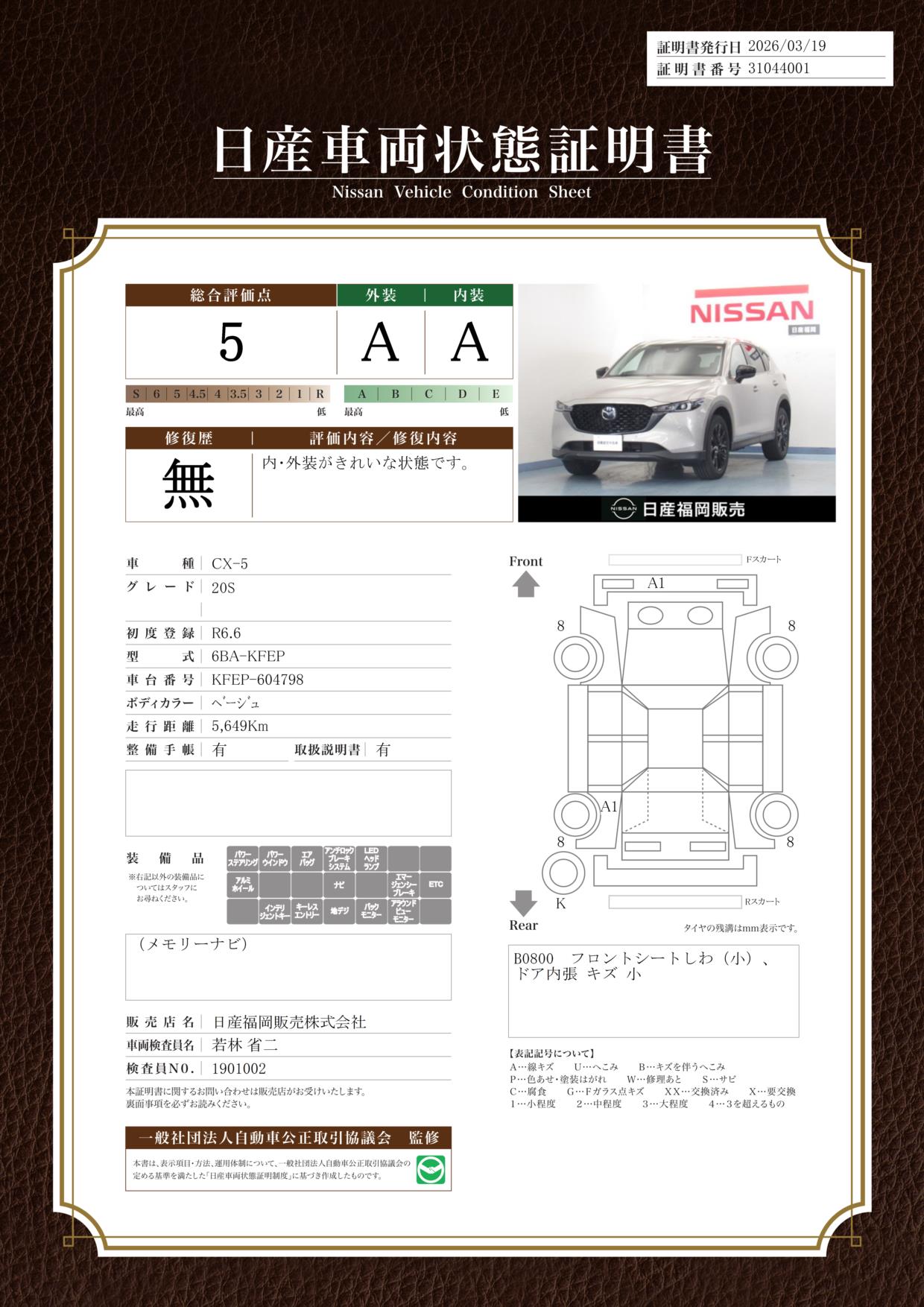 日産車両状態証明