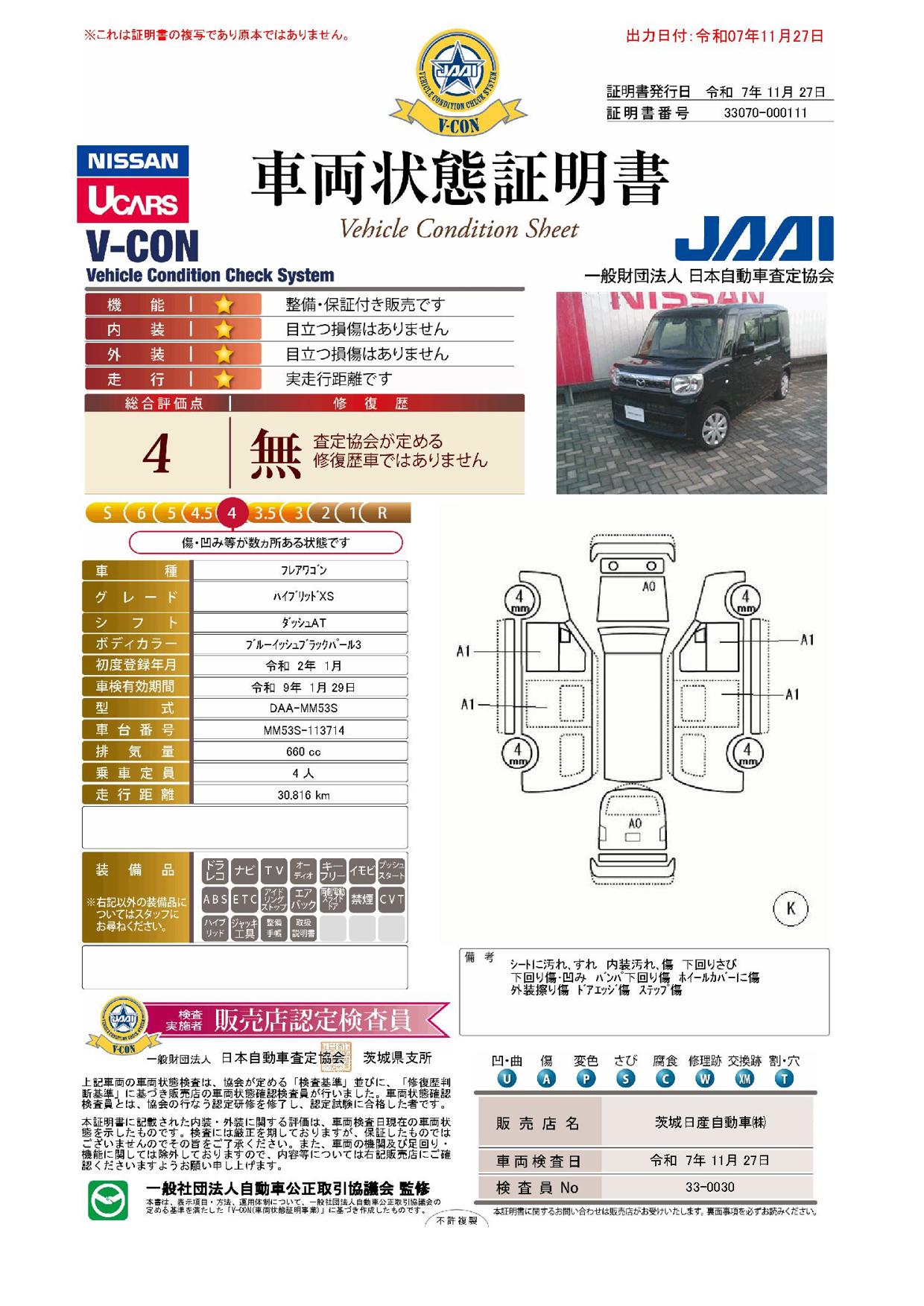納車時に定期点検整備(費用は車両価格に含まれます。)