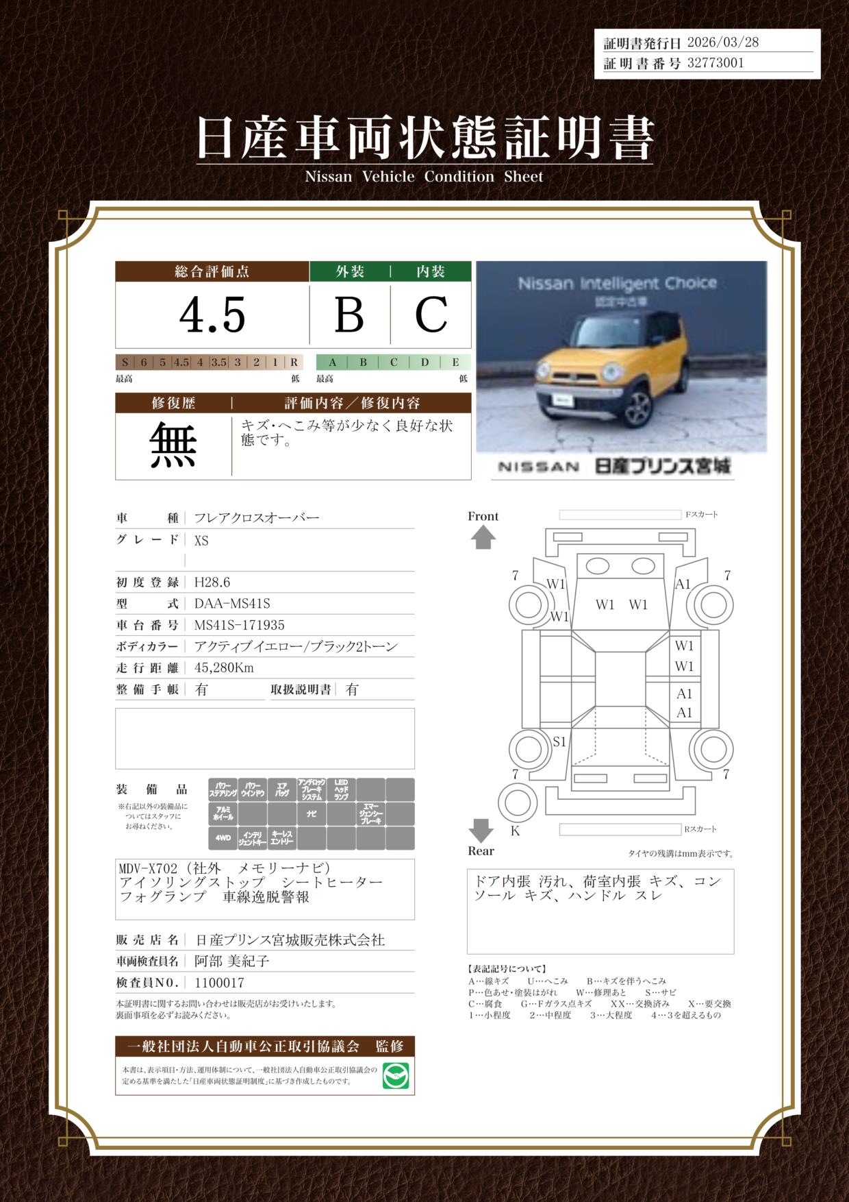 現状括弧書き内の年月まで車検有効期限が残っていますが、ご成約時に新しく車検を取り直します。なお取り直しの費用は車両価格に含まれています。