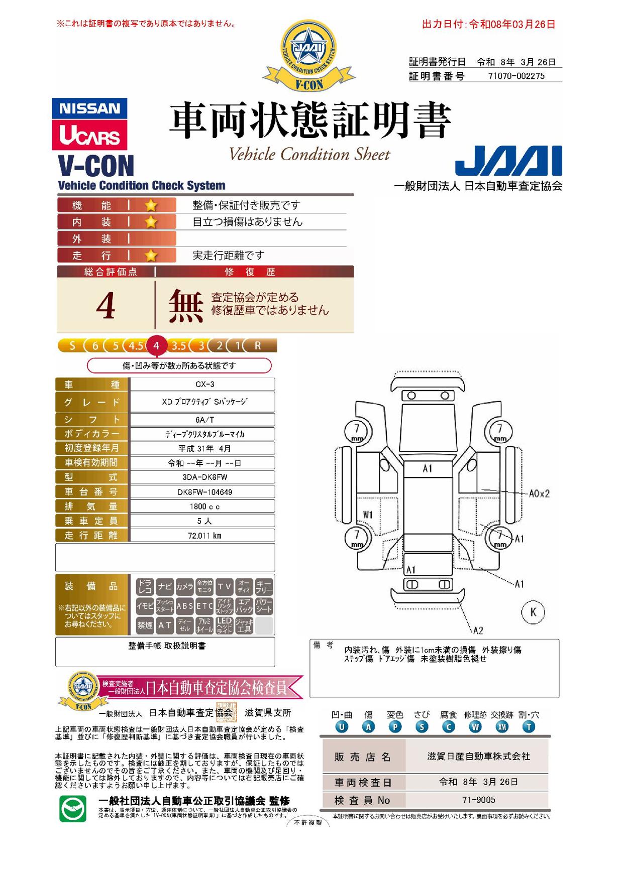 購入から3か月間、走行距離無制限で保証。