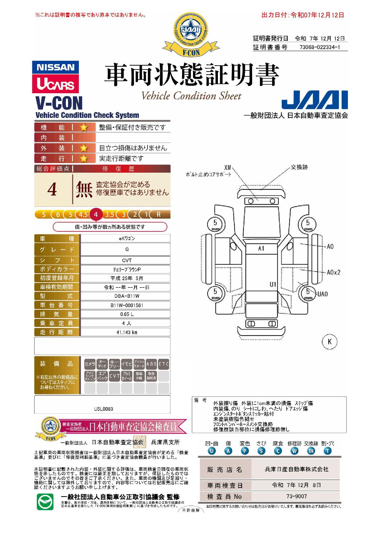 現状括弧書き内の年月まで車検有効期限が残っていますが、ご成約時に新しく車検を取り直します。なお取り直しの費用は車両価格に含まれています。