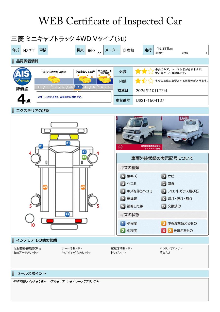 ミニキャブトラック 660cc 660 Vタイプ 4WD 最大積載350キロ 3方開き