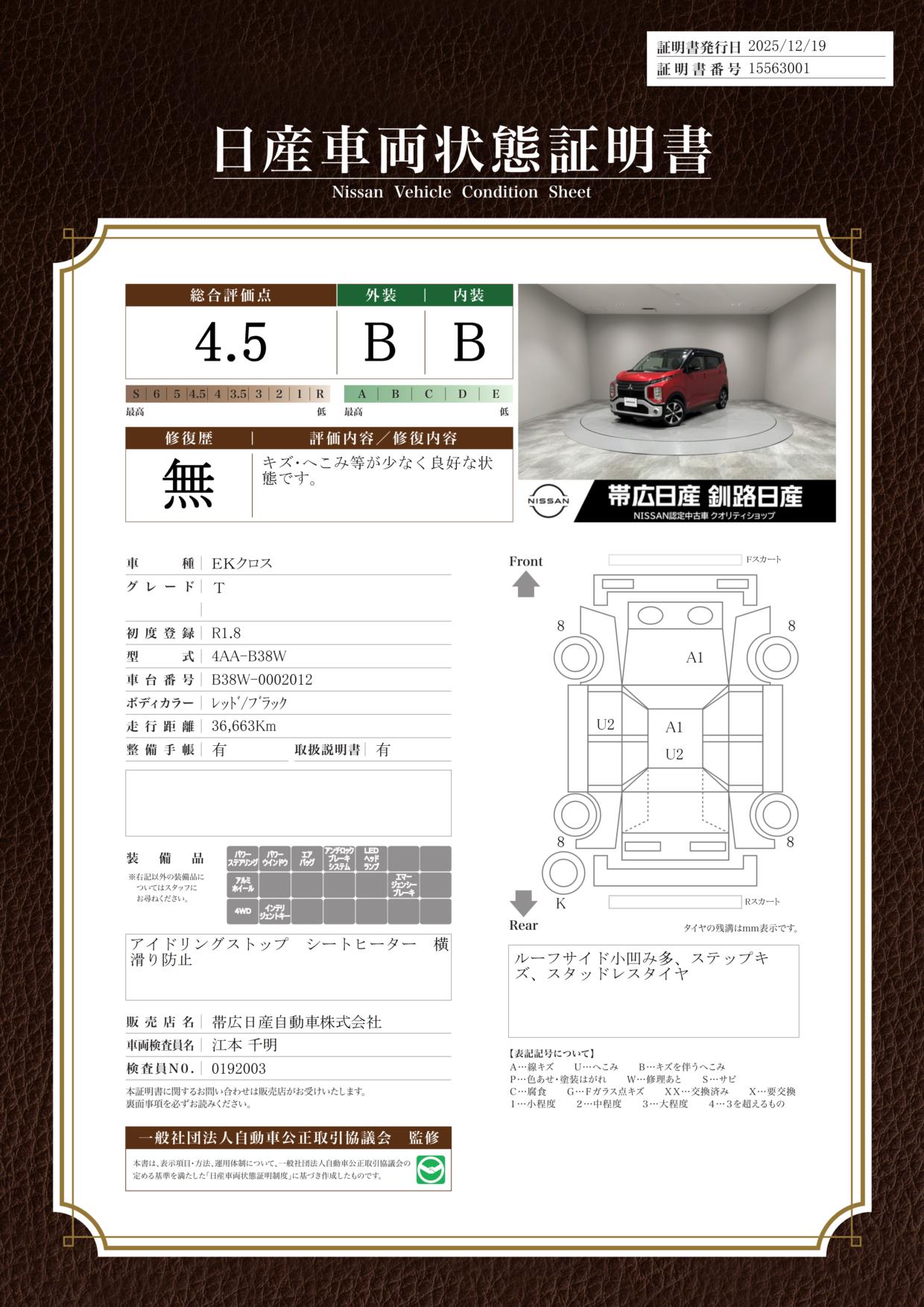 現状括弧書き内の年月まで車検有効期限が残っていますが、ご成約時に新しく車検を取り直します。なお取り直しの費用は車両価格に含まれています。