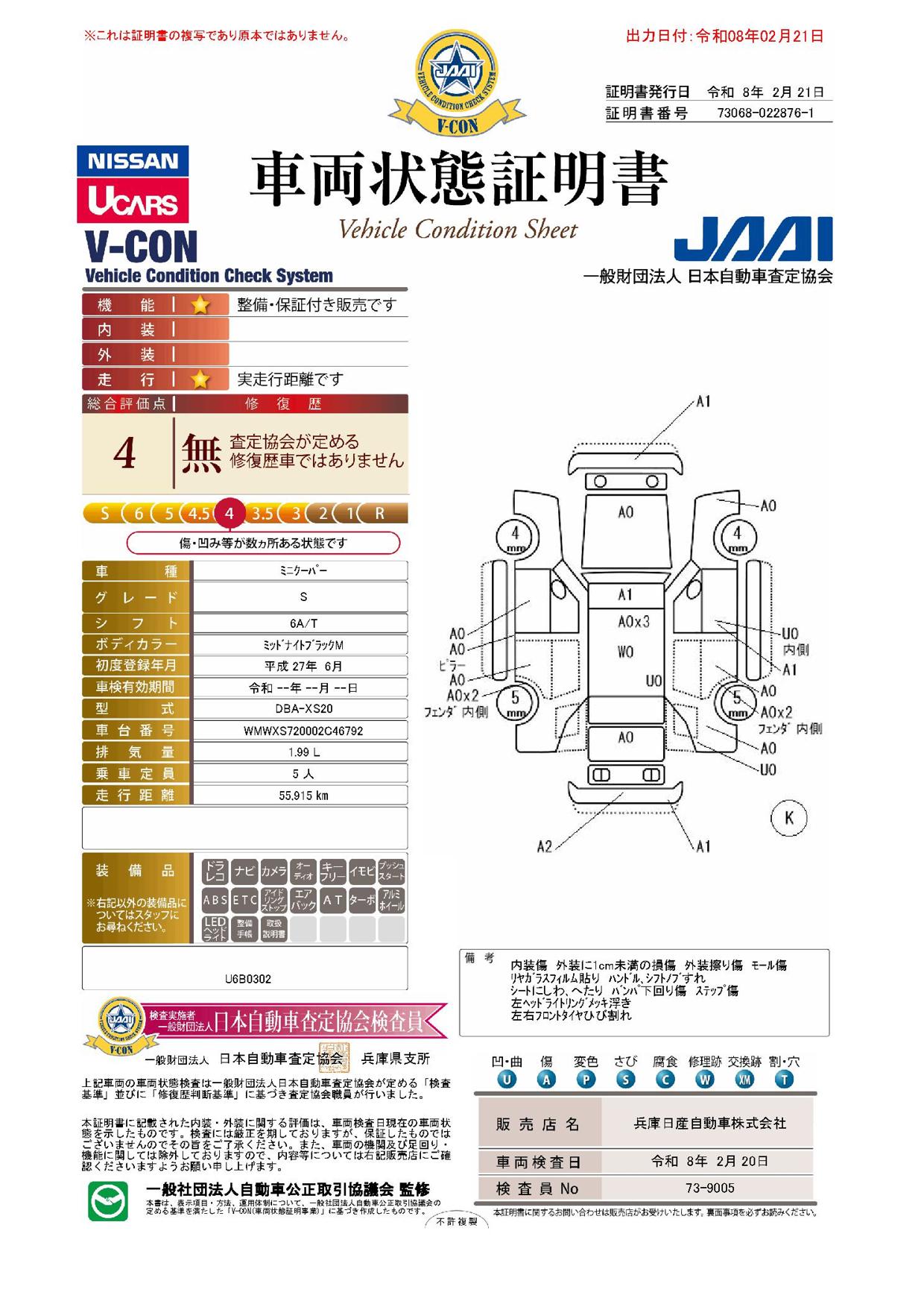 現状括弧書き内の年月まで車検有効期限が残っていますが、ご成約時に新しく車検を取り直します。なお取り直しの費用は車両価格に含まれています。
